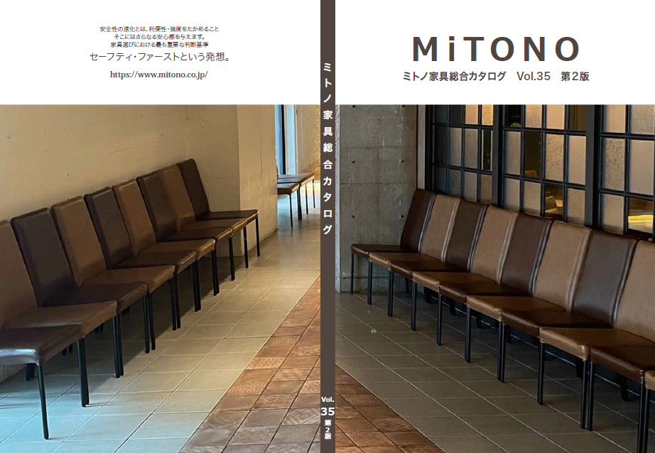 2025/12/01 ミトノ家具総合カタログ MⅰTONO Vol.35 第2版 セーフティ・ファーストという発想。を発刊いたしました。 この度弊社では、ミトノ 家具総合カタログ MⅰTONO Vol.35 第2版 セーフティ・ファーストという発想。を発刊いたしました。 今回の新カタログ Vol.35 第2版は、一部を変更・追記し、新しい版としました。 是非とも新カタログのご活用を頂き、より一層の御拡販お引き立てのほど、よろしくお願い申し上げます。